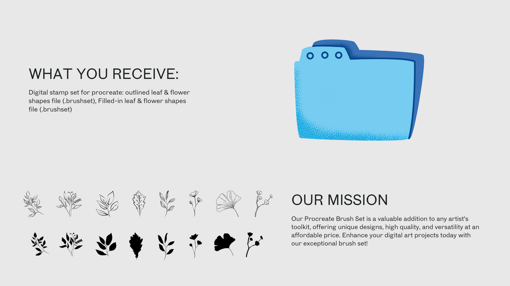 Elevate your digital art with Botanical Bliss, a set of 8 hand-drawn Procreate stamp brushes featuring delicate leaves and flowers in both filled and outline styles! Whether you're designing invitations, or digital illustrations, these versatile stamps make adding elegant botanical elements effortless—just tap and create!
