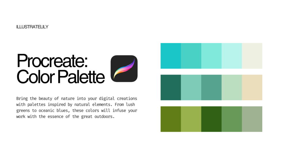 Procreate Color Palette – Sea, Ocean, Tree & Grass Theme: Nature-Inspired Shades for Your Artwork